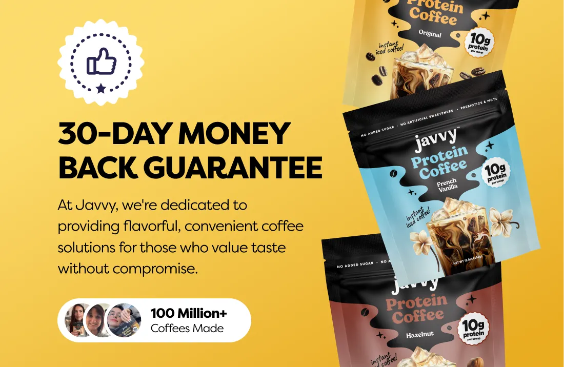 We’ve worked hard to create a protein coffee that tastes as smooth and delicious as your favorite cold brew, without any chalky texture. But we understand that taste is subjective. That’s why we offer a 30-day money-back guarantee on your first order. If for any reason you’re not satisfied, we’ll refund your purchase.