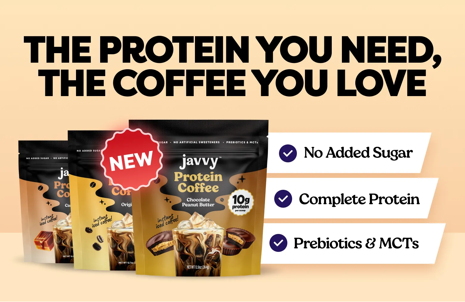 Decadent chocolate flavored coffee with premium whey protein