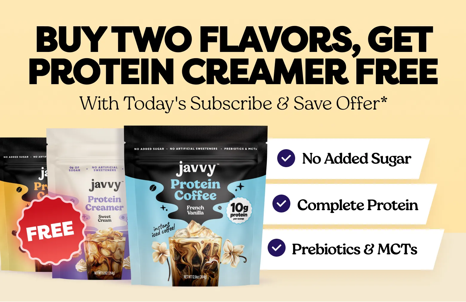 Mix in 1-2 scoops of Javvy’s protein coffee.