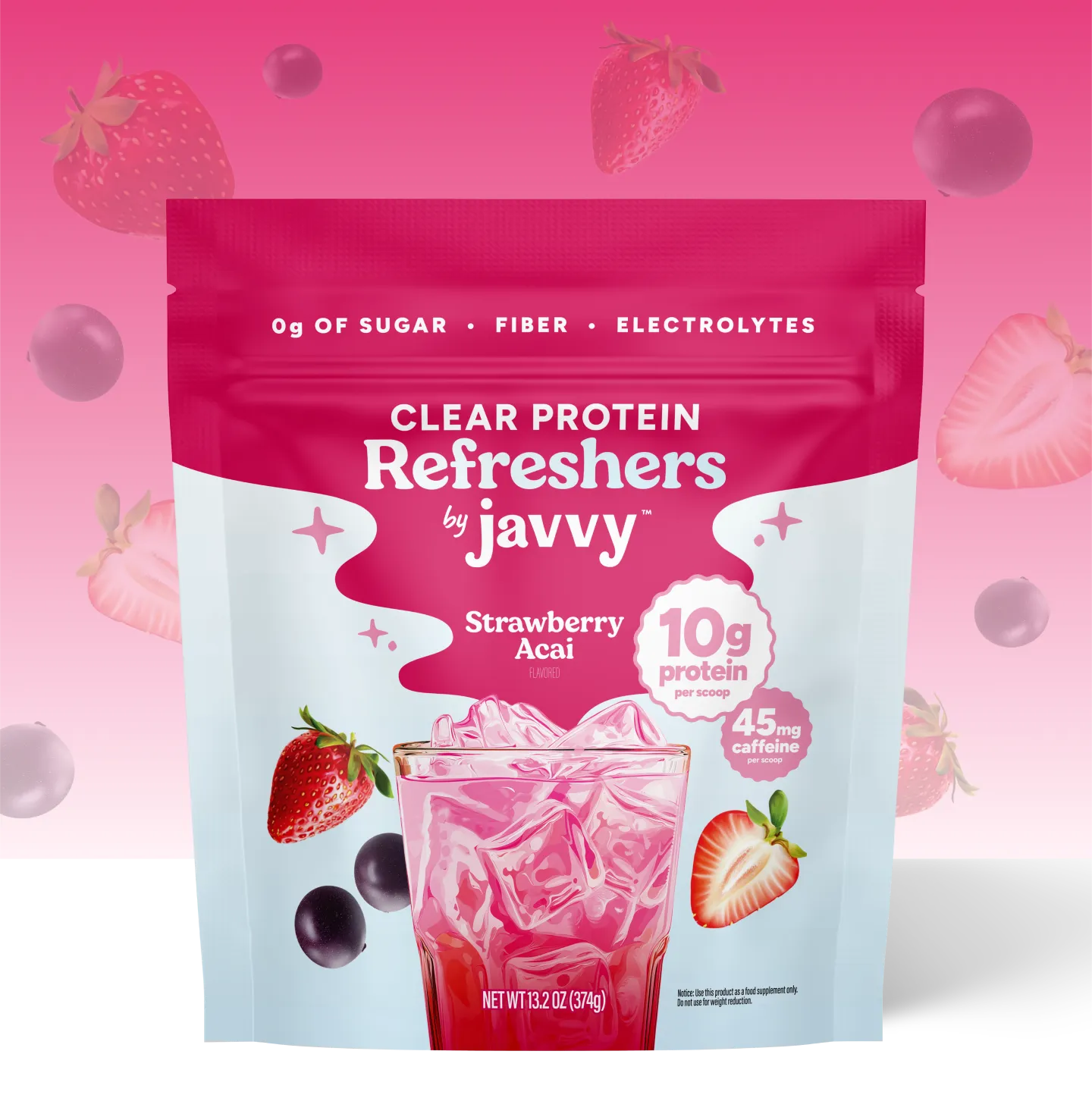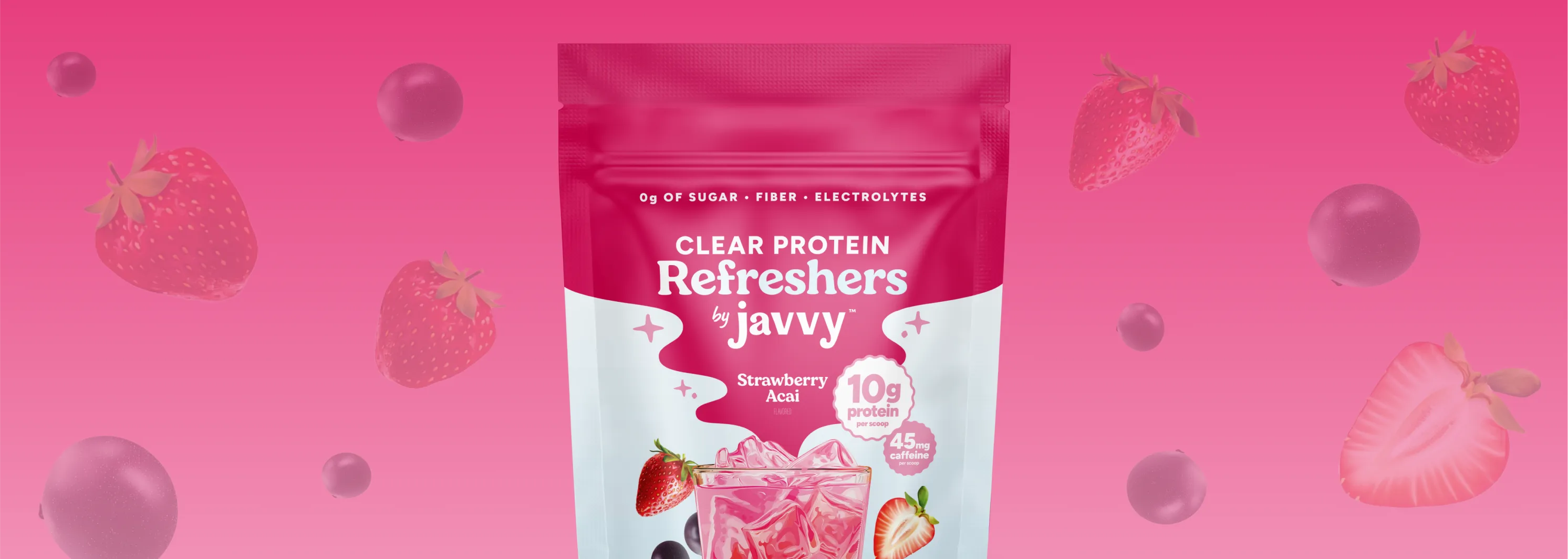 Ripe strawberry and fresh açaí, refreshingly light with clear protein