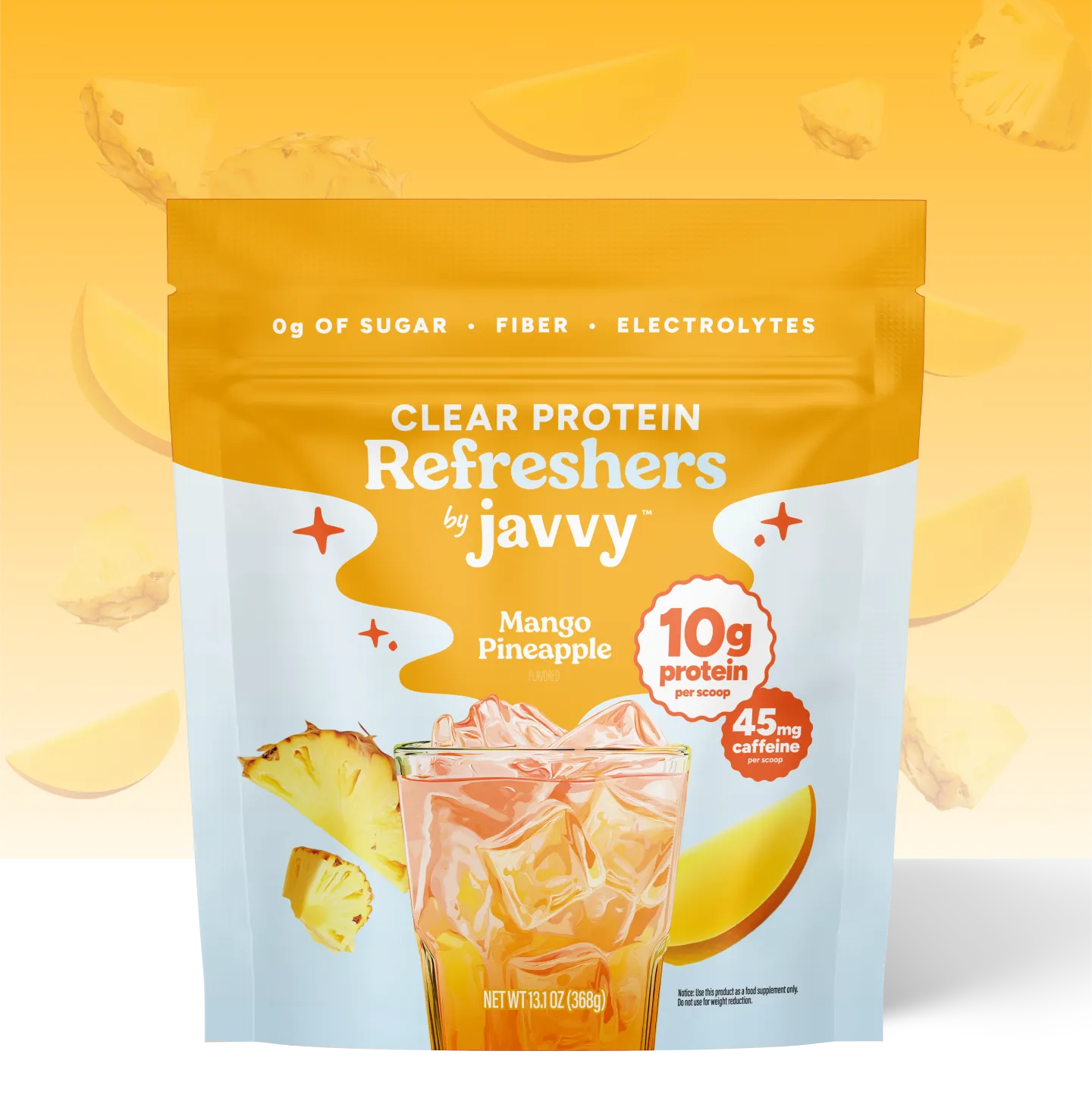 Juicy mango and sweet pineapple, refreshingly light with clear protein