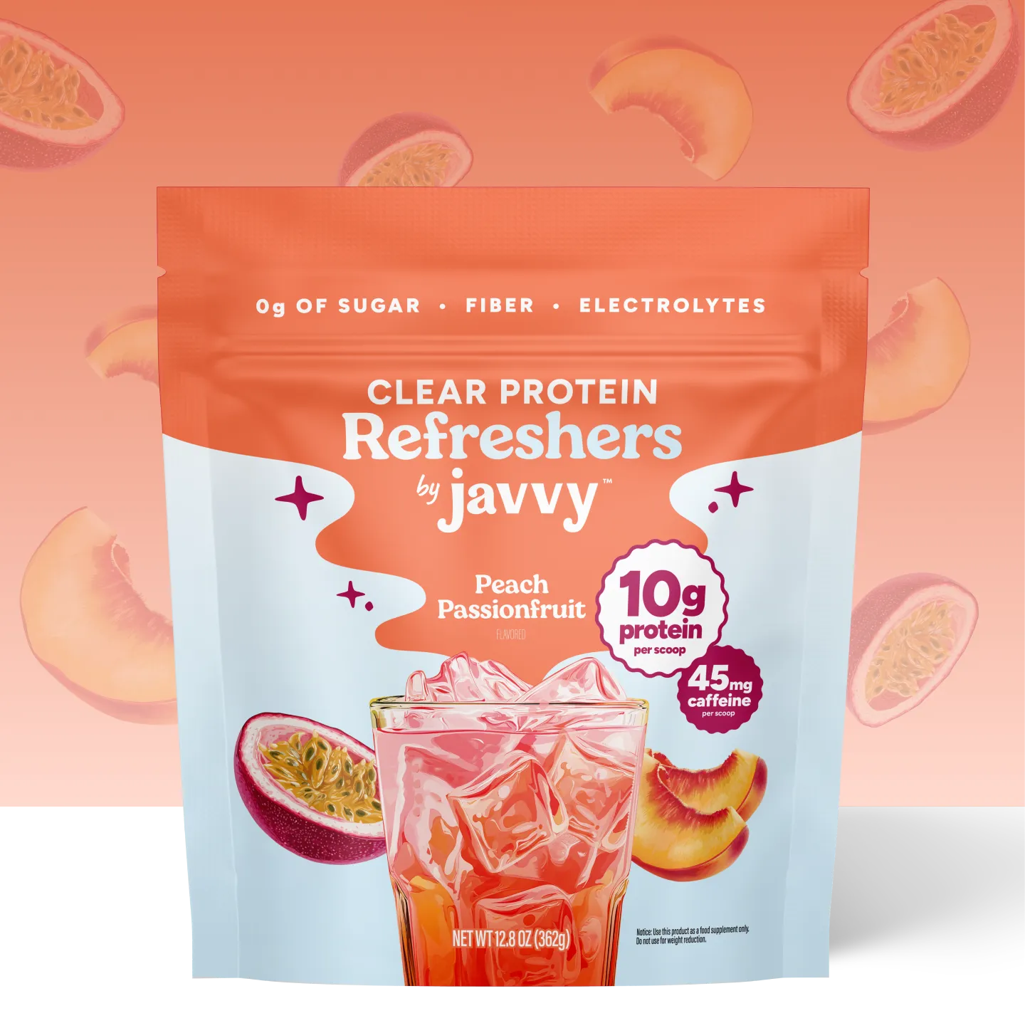 Tangy peach and tropical passionfruit, refreshingly light with clear protein